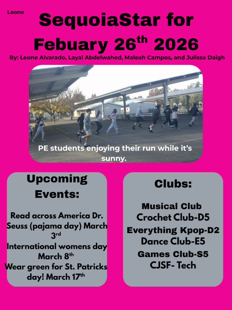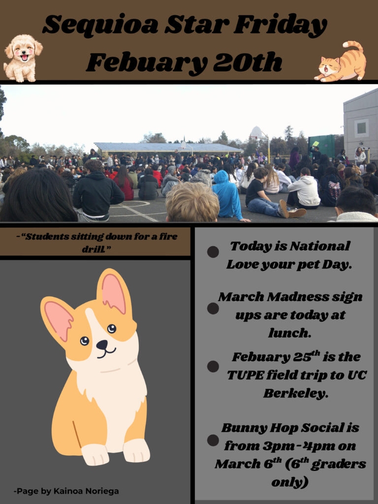 Sequoia's Daily Bulletin in produced and recorded daily by Ms Mangelsdorf's Bulletin Classes at Sequoia Middle School. The Bulletin is created in a learning environment, where students strive to be accurate and inclusive of the entire Sequoia Middle School community. Any mistakes or omissions are accidental.
