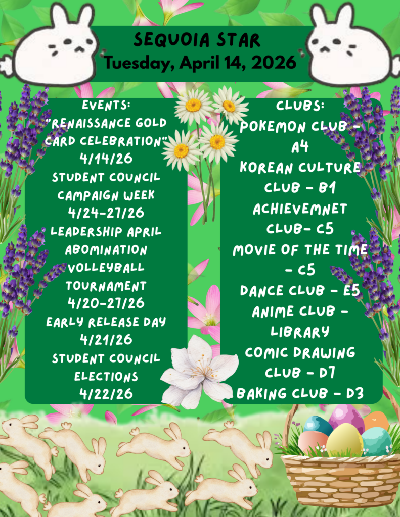 Sequoia News – Friday, April 3rd – IT’S TIME FOR SPRING BREAK!