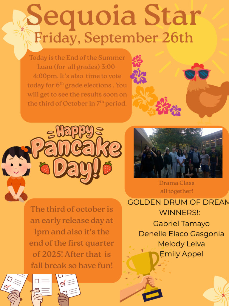 Sequoia News – Friday, October 3rd – HAPPY FALL BREAK!!