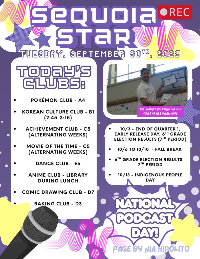 Sequoia News – WELCOME BACK! – Tuesday, October 14th